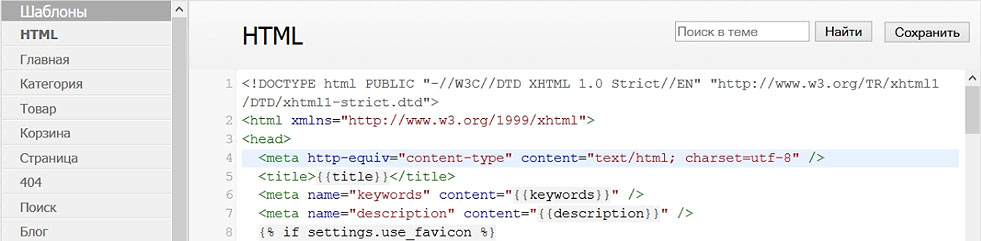 InSales дает возможность управлять дизайном на уровне исходного кода (HTML, CSS, JS) и изменять шаблоны под себя.