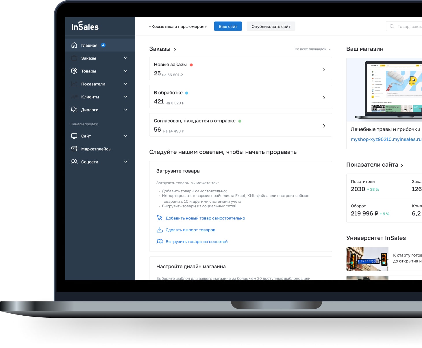 В InSales бэк-офис разработан по принципам UX-дизайна для удобства в навигации и пользовании всем функционалом платформы. Также мы постоянно публикуем обучающую документацию и видео-контент, чтобы помочь освоить все функциональные преимущества InSales.