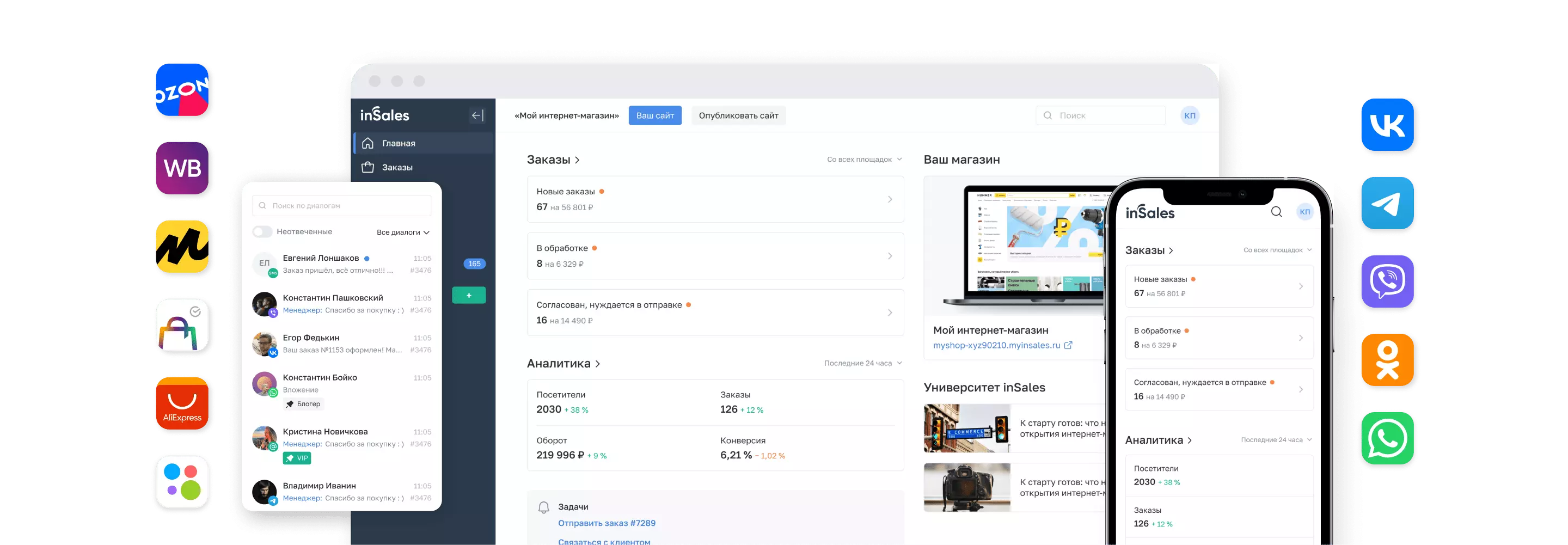 Платформа inSales поддерживает множество платежных систем, включая оплату банковскими картами,
